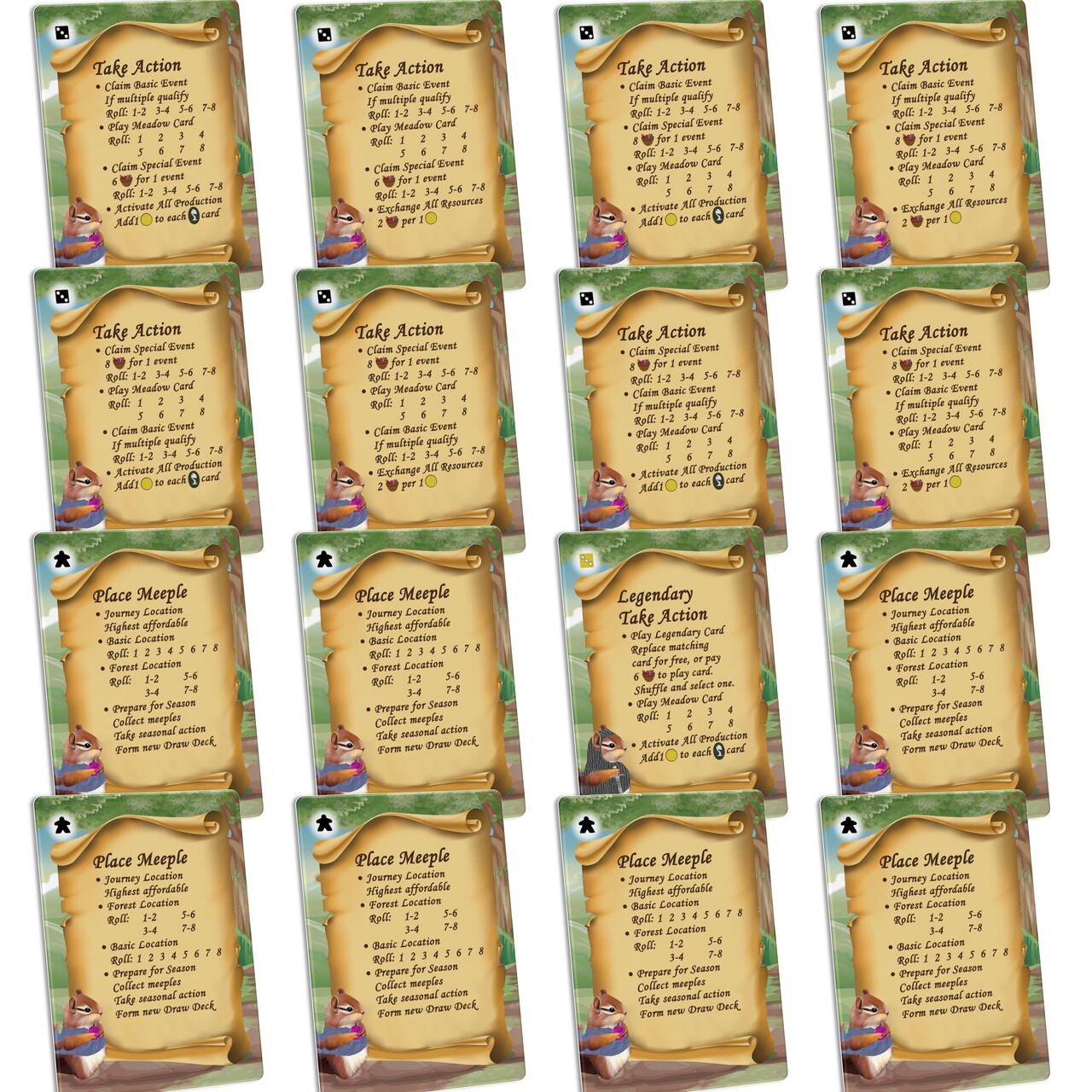 Atticus Automa for SOLO playing board game Everdell. Card size is 63x88mm. Set includes: