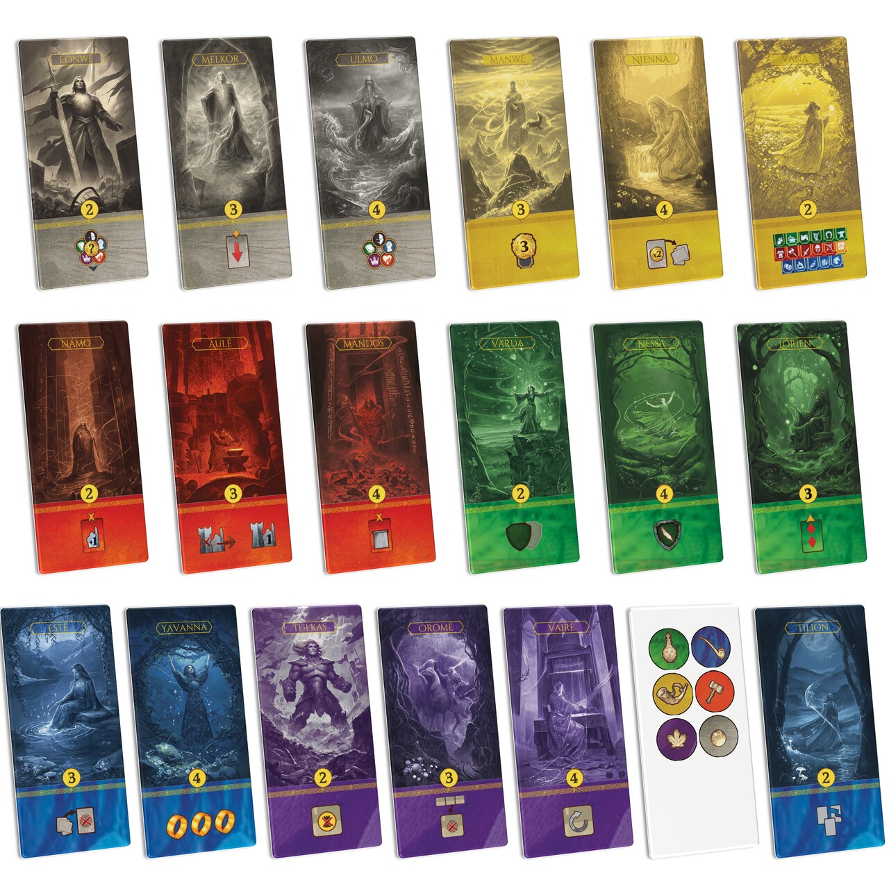 Enhance your gameplay with this fan-made expansion for The Lord of the Rings: Duel for Middle-earth, featuring 18 new Landmark tiles and The Six Legends of the Valar.